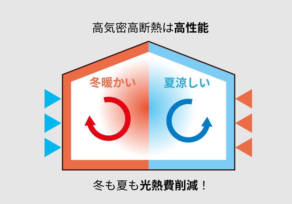 高気密高断熱住宅は、冬は暖房で温めた空気が外に逃げにくく、夏は涼しい空気が外から入り込みやすいので、電気代やガス代を大幅に節約できます。