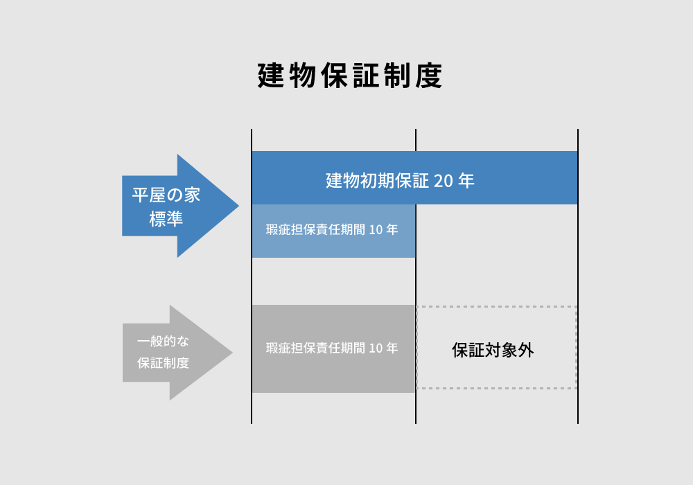 建物保証が20年あれば、10年保証の場合よりも長い期間、住まいの不具合に対して安心感を得られます。特に、構造躯体や防水など、長期的な保証が重要な部位を20年間保証してくれるのは大きなメリットです。